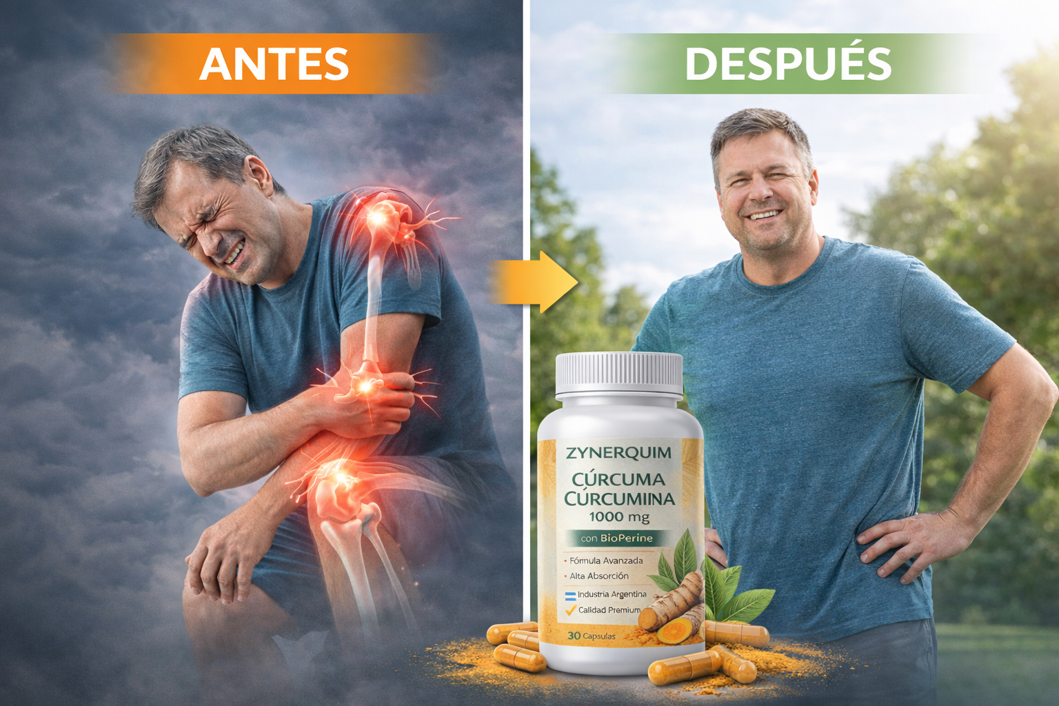 "Trabajo de pie 10 horas y las rodillas me mataban al terminar el turno. Con la cúrcuma empecé a notar la diferencia a la semana. Ahora llego a casa sin ese dolor que tenía siempre."